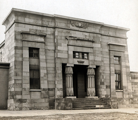 Architect John Haviland designed both the New Jersey State Penitentiary and the NYC Halls of Justice, later known as The Tombs, in Egyptian Revival Style. While not only more economical than the popular gothic style, he believed it would be a humanitarian style. Haviland believed that Egyptian Revival Style would evoke a deep sense of justice and wisdom—qualities the West associated with ancient Egypt—to encourage incarcerated people to focus on rehabilitation. James Elmes’ (John Haviland’s mentor) wrote about Egyptian Revival Style saying it was “immortality, sacred solemnity, and awesome grandeur.”